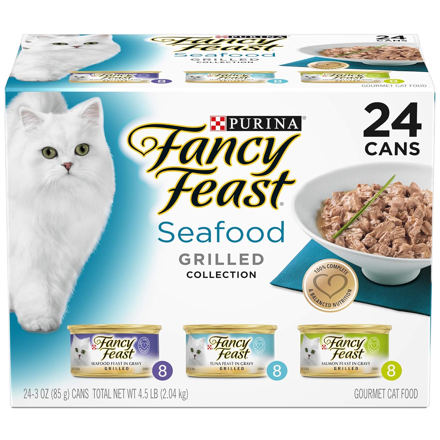 Twenty-Four (24) 3 Oz. Can - Purina Fancy Feast Grilled Seafood Collection Gourmet Wet Cat Food Variety Pack