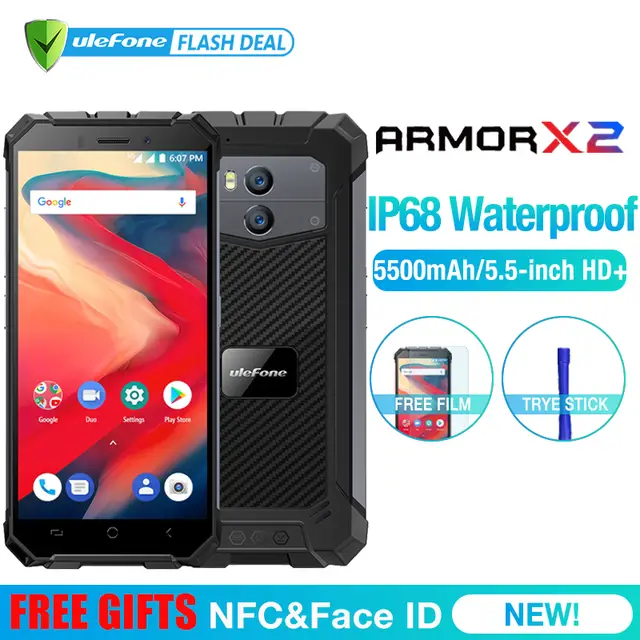 Ulefone Armor X2 Waterproof IP68 3G Smartphone 5.5" HD Quad Core Android 8.1 2GB+16GB NFC Face ID 5500mAh Dual Cam Mobile Phone